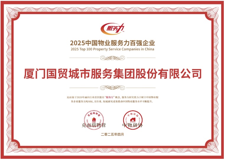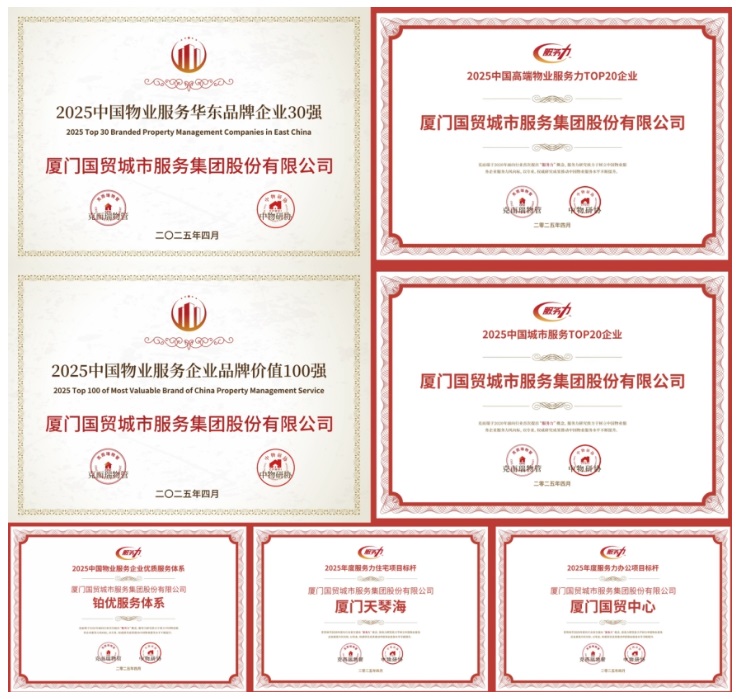 同時(shí),國(guó)貿(mào)服務(wù)還榮獲2025中國(guó)物業(yè)服務(wù)企業(yè)品牌價(jià)值100強(qiáng)、中國(guó)高端物業(yè)服務(wù)力TOP20企業(yè)、中國(guó)城市服務(wù)力TOP20企業(yè)、中國(guó)物業(yè)服務(wù)華東品牌企業(yè)30強(qiáng)。此外,國(guó)貿(mào)服務(wù)“鉑優(yōu)服務(wù)體系”榮獲中國(guó)物業(yè)服務(wù)企業(yè)優(yōu)質(zhì)服務(wù)體系,在管的廈門天琴海項(xiàng)目、廈門國(guó)貿(mào)中心項(xiàng)目榮獲2025年度服務(wù)力標(biāo)桿項(xiàng)目。
