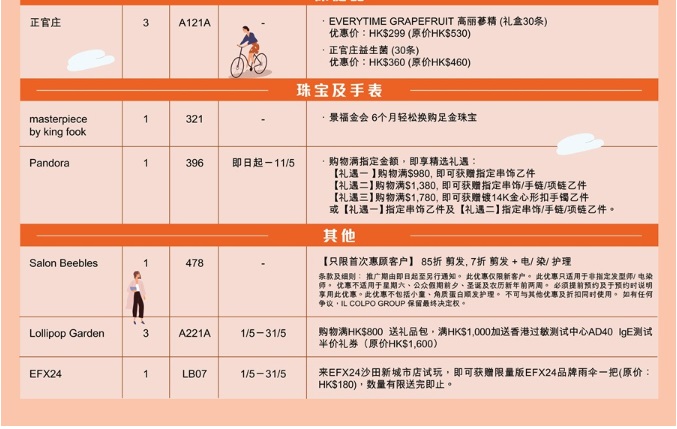 購物滿HK$800贈送RMB30元支付寶交通代金券,滿HK$7000贈送HK$100萬寧禮券和HK$1200電子禮券,滿HK$20000贈送HK$150萬寧禮券和HK$3300電子禮券,若2萬消費內(nèi)包含有HK$1000以上的服飾消費,還可額外獲贈海洋公園門票一張,送你去和城中最熱門的熊貓寶寶們親臨見面!