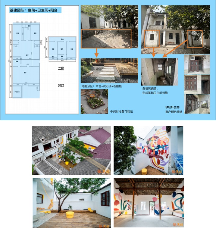 庭院作為公共活動的重要場所,在院子2022的改造中被賦予了新的活力。設(shè)計師對庭院地面進行精心分區(qū),木臺、灰石子、石踏板錯落有致,墻面上的巨幅藝術(shù)繪畫使得整個庭院富有藝術(shù)氣息。在這里,居民們可以圍坐閑談、孩子們嬉戲玩耍,溫暖的鄰里情誼在此悄然生長。