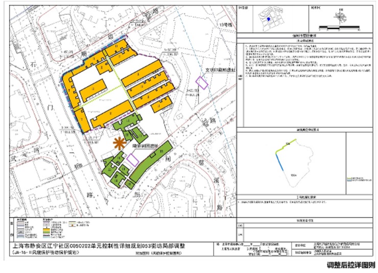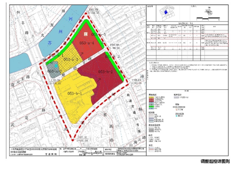 根據(jù)《上海市靜安區(qū)江寧社區(qū)C050202單元控制性詳細(xì)規(guī)劃053街坊局部調(diào)整》公示內(nèi)容,規(guī)劃將053-b-1地塊(66街坊)用地性質(zhì)調(diào)整為Rr3c2(三類住宅組團(tuán)\商業(yè)服務(wù)業(yè)混合用地),容積率調(diào)整為3.53,用地面積16809平方米,規(guī)劃總建筑規(guī)模約為5.93萬㎡,限高150米,地塊內(nèi)需要保留的歷史建筑面積不少于1.53萬平方米,均為里弄建筑。這意味著該地塊未來將可以建設(shè)150米超高層建筑,以及保留部分風(fēng)貌建筑。同時,地塊預(yù)留社區(qū)級公共服務(wù)設(shè)施建筑面積3500㎡。
