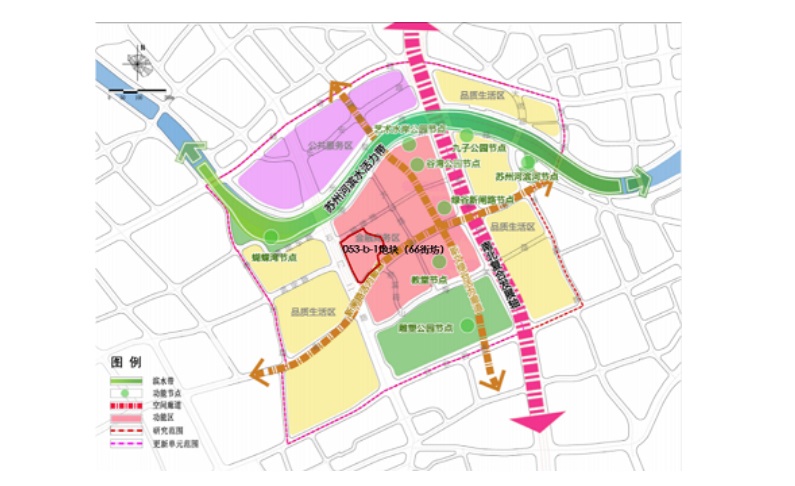 053-b-1地塊(66街坊)位于蘇河沿岸的核心區(qū)域,周邊1公里范圍內(nèi)有4條地鐵線(1號線、2號線、13號線和12號線)、5個地鐵站點(diǎn)、3個市級商圈,10分鐘直抵南京西路、人民廣場,地塊內(nèi)歷史遺存豐富,周邊教育醫(yī)療資源優(yōu)質(zhì),有育才初級中學(xué)、上海上外靜安外國語小學(xué)和靜安中心醫(yī)院等。另外,未來空間上可進(jìn)一步融入蘇州河南岸濱水岸線,實(shí)現(xiàn)南北的慢行串聯(lián),共享開放場域。
