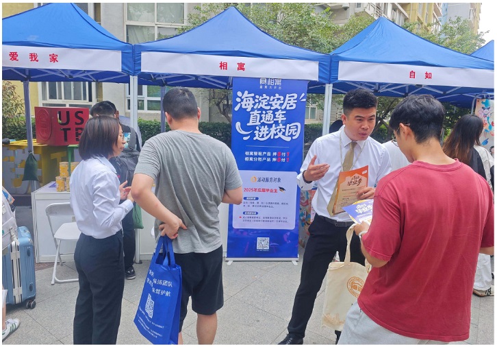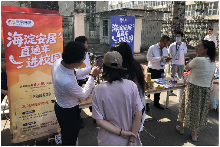 又是一年畢業(yè)季,為切實幫助畢業(yè)生安居,北京市組織了2025年度“畢業(yè)季租房服務進校園”活動。海淀區(qū)作為高校聚集地,在市活動號召及區(qū)房管局指導下,推出了“海淀安居直通車”專屬優(yōu)惠活動。作為海淀區(qū)房地產(chǎn)經(jīng)紀行業(yè)協(xié)會會長單位,我愛我家牽頭組織區(qū)內(nèi)房地產(chǎn)經(jīng)紀機構(gòu)、住房租賃企業(yè)、保租房項目企業(yè)等,走進中國人民大學、中國農(nóng)業(yè)大學、北京航空航天大學等近10所高校和園區(qū),宣講優(yōu)惠政策和提供優(yōu)質(zhì)服務,助力畢業(yè)生安居。