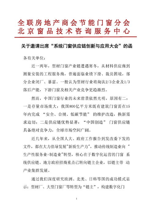 關(guān)于邀請出席“系統(tǒng)門窗供應(yīng)鏈創(chuàng)新與應(yīng)用大會”的函