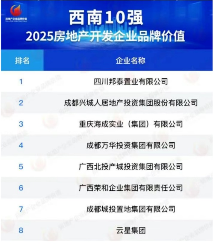 據(jù)中國(guó)房地產(chǎn)業(yè)協(xié)會(huì)、上海易居房地產(chǎn)研究院與克而瑞集團(tuán)聯(lián)合發(fā)布的《2025房地產(chǎn)企業(yè)品牌價(jià)值測(cè)評(píng)研究報(bào)告》顯示,邦泰集團(tuán)憑借其堅(jiān)實(shí)的品牌積淀與戰(zhàn)略聚焦,成功躋身克而瑞榜單西南片區(qū)TOP1,成為品牌價(jià)值攀升的典型代表。這一排名并非偶然,其背后是邦泰一系列扎實(shí)業(yè)績(jī)數(shù)據(jù)的支撐:從進(jìn)一城深耕一城的城市布局的廣度,到單城項(xiàng)目的熱銷深度;從超越行業(yè)標(biāo)準(zhǔn)的產(chǎn)品配置,到高達(dá)98%的客戶滿意度,邦泰的品牌實(shí)力正通過(guò)這些硬核指標(biāo)得到充分驗(yàn)證。