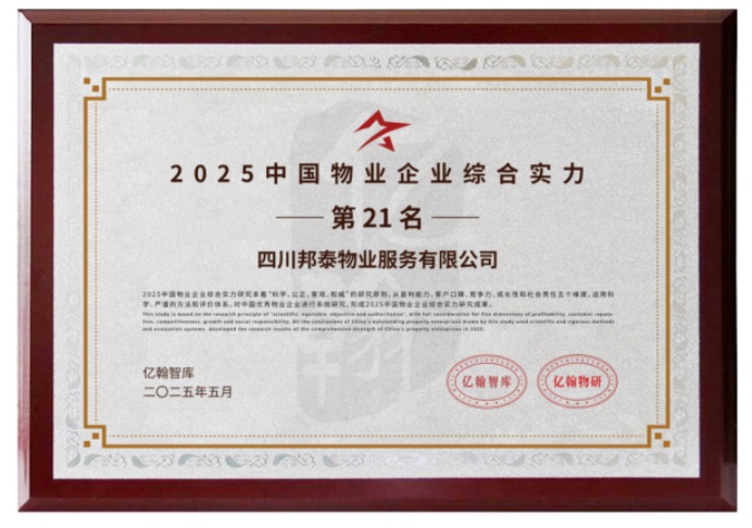 邦泰深知,真正的品質(zhì)生活不僅源于好房子,更取決于交付后長(zhǎng)期的物業(yè)服務(wù)體驗(yàn)。邦泰物業(yè)以連續(xù)多年客戶滿意度超過(guò)95% 的卓越表現(xiàn),在2025年榮獲全國(guó)物業(yè)企業(yè)綜合實(shí)力第21名,印證了集團(tuán)從“好產(chǎn)品”到“好生活”的承諾兌現(xiàn)。