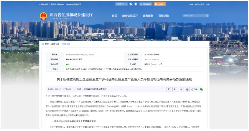 2025年11月26日,陜西省住建主管部門印發(fā)專項通知,明確“建筑施工企業(yè)法人需持有安全生產(chǎn)考核合格A證”為企業(yè)申請、延期安全生產(chǎn)許可證(以下簡稱“安許”)的必要前置條件,2026年3月26日為強制達標截止日。結合陜西此前發(fā)布的安管人員考核管理規(guī)定,當前本地法人持A證已形成“條件清晰、流程規(guī)范、處罰剛性”的監(jiān)管體系。作為陜西建筑行業(yè)合規(guī)數(shù)字化“領路者”,陽光智建第一時間完成新政拆解,助力區(qū)域企業(yè)緊扣政策節(jié)點推進合規(guī),避免逾期陷入經(jīng)營危機。