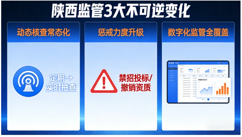 作為建筑行業(yè)合規(guī)數(shù)字化“領(lǐng)路者”,領(lǐng)路者(陜西)科技集團(tuán)有限公司旗下核心品牌——陽(yáng)光智建第一時(shí)間分析研判:這絕非地域個(gè)案,結(jié)合住建部資質(zhì)新政改革趨勢(shì),陜西建筑行業(yè)已進(jìn)入合規(guī)監(jiān)管收緊的關(guān)鍵期,一場(chǎng)力度相當(dāng)?shù)谋O(jiān)管風(fēng)暴正在醞釀,企業(yè)需提前適配以規(guī)避經(jīng)營(yíng)風(fēng)險(xiǎn)。