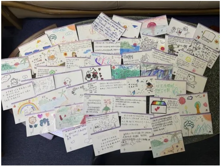活動視頻中,琳瑯滿目的義賣物資、熱火朝天的參與場景、工作人員忙碌的身影交織成動人畫面,生動還原了"以義賣傳情,用行動助夢"的公益初心。而更讓人動容的是,當(dāng)捐贈物資順利送達學(xué)子手中后,孩子們親手制作的感謝卡片陸續(xù)反饋回來——稚嫩的字跡里滿是真誠,"謝謝叔叔阿姨的幫助,我會好好讀書""新的文具和球拍我很喜歡,謝謝你們的關(guān)心",簡單的話語搭配可愛的手繪圖案,成為對此次公益行動最珍貴的回應(yīng)。