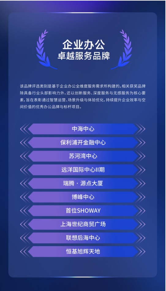 該品牌評選類別是基于企業(yè)辦公全維度服務(wù)需求所構(gòu)建的。相關(guān)獲獎品牌除具備行業(yè)頭部影響力外,還以創(chuàng)新服務(wù)、深度服務(wù)與無感服務(wù)為核心要素,旨在表彰通過智慧運(yùn)營、場景升級與體驗優(yōu)化,持續(xù)提升企業(yè)效率與空間價值的優(yōu)秀辦公品牌與標(biāo)桿項目。