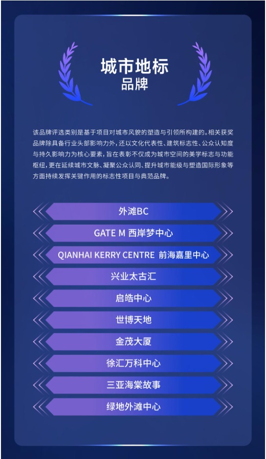 該品牌評選類別是基于項目對城市風(fēng)貌的塑造與引領(lǐng)所構(gòu)建的。相關(guān)獲獎品牌除具備行業(yè)頭部影響力外,還以文化代表性、建筑標(biāo)志性、公眾認(rèn)知度與持久影響力為核心要素,旨在表彰不僅成為城市空間的美學(xué)標(biāo)志與功能樞紐,更在延續(xù)城市文脈、凝聚公眾認(rèn)同、提升城市能級與塑造國際形象等方面持續(xù)發(fā)揮關(guān)鍵作用的標(biāo)志性項目與典范品牌。