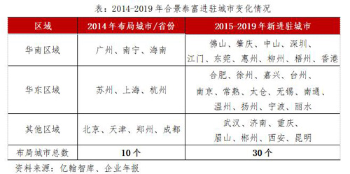注:2014年合景泰富在鄭州擁有一個項目,但2019年時,在鄭州的項目數(shù)量為0,因此截至2019年12月31日,企業(yè)進(jìn)駐的城市為39個。
