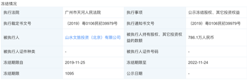 另外,山水文旅投資(北京)有限公司有786.1萬元的股權被廣州市天河人民法院凍結,凍結日期自2019年11月25日至2022年11月24日。值得一提的是,澎湃新聞在查詢中發(fā)現,早在6月2日融創(chuàng)接手山水文園的浙江嘉興市海鹽文旅項目之前,在重慶項目中就已出現了融創(chuàng)的身影。