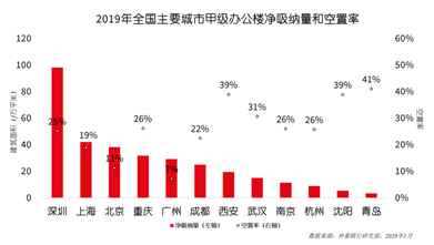 2019年,重慶甲級辦公樓租金同口徑同比下跌3.3%,報86.1元/平方米/月,以價換量成為大勢所趨。