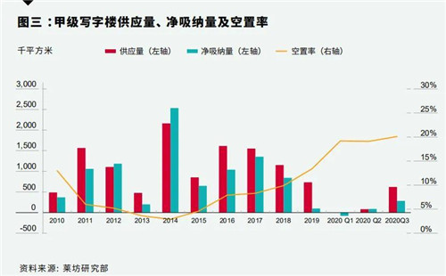 第四季度,如無推遲計劃,預計將有70萬平方米左右的新項目計劃竣工交付。預計平均空置率將繼續(xù)攀升,市場租金繼續(xù)呈下降走勢。”