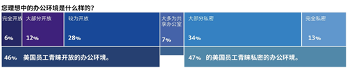 近一半的美國員工更青睞私密的辦公環(huán)境。法律和政府工作人員最注重個人隱私。