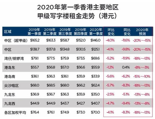目前香港寫字樓租賃需求變得疲弱,展望本年全年的待租率將維持在雙位數(shù)的水平,整體租金在本年內(nèi)將下調(diào)13-18%,中區(qū)的跌幅更會(huì)多達(dá)15-20%。