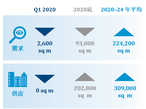 高力預計2020年新增供應為20.3萬平方米,但受疫情影響,不排除部分項目延期入市的可能,在需求下降的同時供應量也在下降,這將緩解市場競爭。