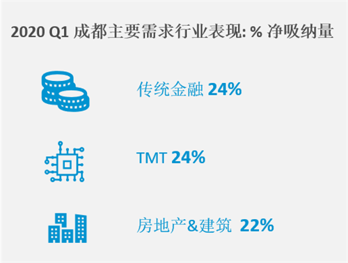 高力預計2020年成都市場將以搬遷、換租升級為主。網(wǎng)游、電商、線上教育、生物醫(yī)藥、健康和保險等因疫情業(yè)務增加的行業(yè),其租賃需求或?qū)⒃黾印8吡ㄗh辦公樓業(yè)主可以尋求與上述行業(yè)公司合作,調(diào)整租戶結(jié)構(gòu)同時多元化行業(yè)組合以分散風險。