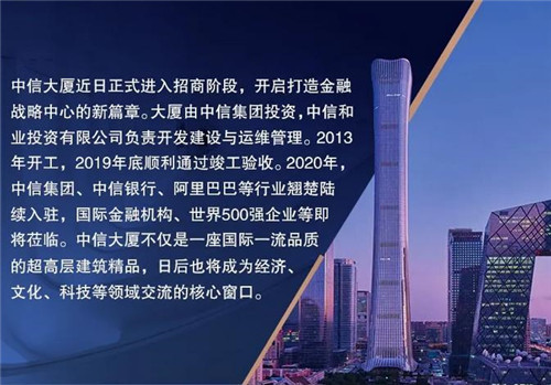 中信大廈匯集甲級(jí)寫字樓、會(huì)議、商業(yè)等多種配套服務(wù)功能于一體,致力于打造頂尖企業(yè)戰(zhàn)略中心的新篇章由此開啟。