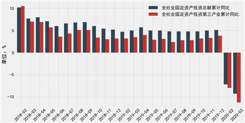 圖:2018年~2020年一季度上海全社會固定資產(chǎn)投資情況(單位:%)