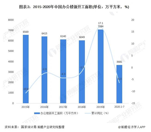 辦公樓指機關、企業(yè)、事業(yè)單位行政管理人員,業(yè)務技術人員等辦公的業(yè)務用房,現(xiàn)代辦公樓正向綜合化、一體化方向發(fā)展。辦公寫字樓是專業(yè)的商業(yè)辦公的場所。一般具有較好的地理位置,相關的物業(yè)和服務設施水平高,具有聚集的商業(yè)圈,效率較高。2018年,中國辦公樓開發(fā)投資規(guī)模跌破6000億元,僅為5996.33億元,2019年投資完成額略有回升,至6163億元,增長2.8%。2020年受新冠疫情影響,我國辦公樓發(fā)展受到較大沖擊,截止2020年7月,我國辦公樓開發(fā)投資規(guī)模下降2.1%至3262億元。
