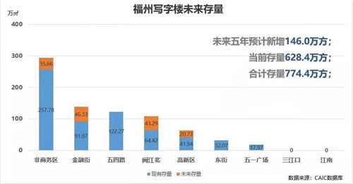 據(jù)統(tǒng)計,截止2020年上半年,福州寫字樓存量約為628.43萬㎡,共計129個項目。從目前情況來看,未來五年,寫字樓的預(yù)計新增供應(yīng)體量約146.0萬㎡,相當(dāng)于當(dāng)前存量的23.2%,而未來總存量將高達(dá)774.4萬㎡!