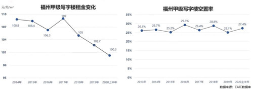 受疫情及新增供應(yīng)影響,截止2020年第二季度末,福州甲級寫字樓空置率已達(dá)到了27.4%,同比去年上升2.3%。更不用說未來還有升龍環(huán)球中心、僑璽中心、518世茂大廈等寫字樓不斷入市,更是加大了整體市場的供應(yīng)量。