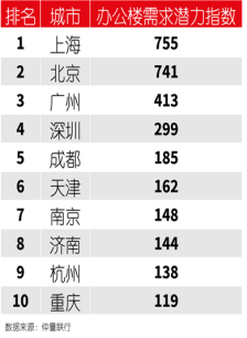 根據(jù)測(cè)算,北京和上海甲乙級(jí)辦公樓的潛在需求均在4000萬(wàn)平方米左右,廣州和深圳則在2000萬(wàn)平方米上下,成都、南京和杭州等城市需求上限也超過了700萬(wàn)平方米,經(jīng)濟(jì)總量排名前10城市的潛在需求總量則超過其他200多座城市的需求潛力總和,體現(xiàn)出中國(guó)辦公樓市場(chǎng)需求向頭部城市聚集的特征。
