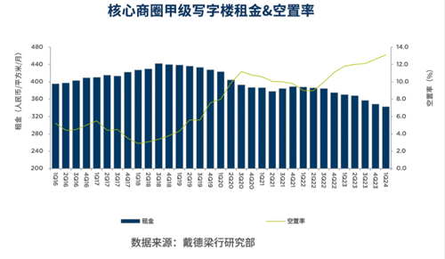 一季度,受新興商圈大面積成交租賃的影響,北京整體市場季度凈吸納量已接近2023年全年水平,為14.4萬平方米。寫字樓市場成交的小幅回升令全市空置率自2022年二季度以來首次下調(diào),環(huán)比下降0.4個百分點至18.3%。雖然一季度市場活躍度較2023年有所提升,但現(xiàn)有的高空置率持續(xù)給業(yè)主施壓,至此,北京全市租金繼續(xù)下探至每月每平方米人民幣290.7元。