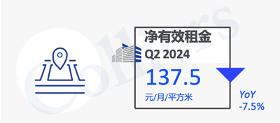 二季度,全市延續(xù)“以價(jià)換量”主旋律,其中珠江新城受凈吸納轉(zhuǎn)負(fù)影響,租金環(huán)比降幅有所加快。上半年,全市租金累計(jì)下降4.9%至137.5元每月每平方米,降幅相較去年同期有所加快。