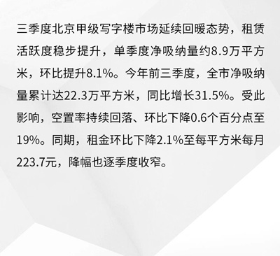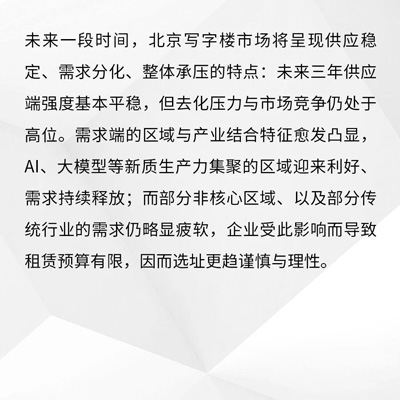 第一太平戴維斯(Savills)發(fā)布2025第三季度中國辦公樓市場回顧及展望。中國寫字樓市場仍映射出宏觀經(jīng)濟的兩速格局:新經(jīng)濟產(chǎn)業(yè)迅速擴張,傳統(tǒng)行業(yè)持續(xù)承壓?萍寂c制造企業(yè)偏向自用或遷入產(chǎn)業(yè)園區(qū),傳統(tǒng)企業(yè)則縮減面積、尋求更高性價比。