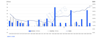 本季度有一個(gè)新項(xiàng)目入市,新增供應(yīng)量約5萬(wàn)平米(龍光世紀(jì)中心),項(xiàng)目尚未形成預(yù)租去化。 此外,四季度仍有一個(gè)新項(xiàng)目待入市,隨著部分項(xiàng)目延期到2026年,全年新增供應(yīng)量預(yù)計(jì)降至35萬(wàn)平方米。