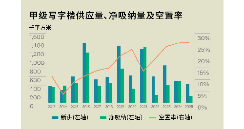 本季度,深圳甲級寫字樓市場新增供應(yīng)激增,大家財險總部大廈、創(chuàng)維海外總部大廈及創(chuàng)金合信總部大樓相繼入市,合計約21.9萬平方米,創(chuàng)年內(nèi)新高。相較之下,租賃需求顯著放緩,全市凈吸納量回落至6.8萬平方米,供過于求的結(jié)構(gòu)性矛盾再度顯現(xiàn)。