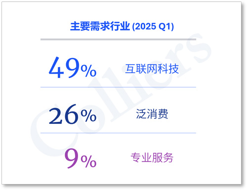 一季度,互聯(lián)網(wǎng)科技類企業(yè)成為租賃需求的主要來源,租賃面積占比近50%。