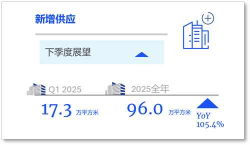 在當(dāng)前市場經(jīng)濟(jì)預(yù)期趨向疲弱的背景下,企業(yè)對租賃動作表現(xiàn)較為謹(jǐn)慎,觀望情緒相對濃厚,季內(nèi)廣州甲級寫字樓增量需求不及去年同期水平。一季度,金融方城全面封頂,廣州國際金融城迎來關(guān)鍵節(jié)點(diǎn),為產(chǎn)業(yè)集聚“筑巢引鳳”。2025年,廣州甲級寫字樓市場供應(yīng)預(yù)計約100萬平方米,在當(dāng)前增量需求增長相對放緩的背景下,預(yù)計2025年寫字樓空置率將繼續(xù)上升約3.0-5.0個百分點(diǎn)。持續(xù)上升的空置率以及平靜的市場需求暫時無法支撐租金企穩(wěn),預(yù)計2025年廣州甲級寫字樓租金繼續(xù)承壓。