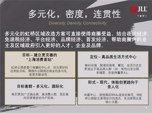 以上海古北虹橋商務(wù)區(qū)為例,作為一個以集聚發(fā)展功能為核心的區(qū)域。這里是中國第一個以涉外商貿(mào)為主導(dǎo)的開發(fā)區(qū),是上海輻射長三角的重要功能區(qū),而如何使虹橋商圈內(nèi)優(yōu)質(zhì)、多元化的人口基礎(chǔ),與商業(yè)及公共設(shè)施間產(chǎn)生聯(lián)動發(fā)展,對于上海塑造兼具體驗性、互動性、創(chuàng)造性的區(qū)域發(fā)展案例具有重要意義。
