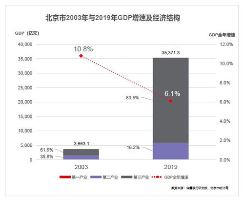 本次新型冠狀病毒疫情所帶來的經(jīng)濟和市場影響,預(yù)計與2003年非典時期的表現(xiàn)將多有可比之處。因此,將當前經(jīng)濟、市場環(huán)境與2003年進行對比,有助于我們更好的分析和理解北京可能面對的挑戰(zhàn)與市場趨勢。目前,已有多篇相關(guān)的全國性經(jīng)濟數(shù)據(jù)分析,因此本文將聚焦北京市,探討北京所受經(jīng)濟社會影響。