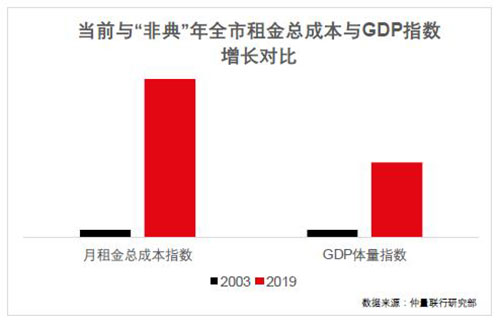 多組數(shù)據(jù)均表明非典時期,北京甲級辦公樓市場僅發(fā)生短期波動,在疫情結(jié)束后回歸快速發(fā)展軌道,為市場在應(yīng)對此次疫情時提供信心。但是值得注意的是,當前北京甲級辦公樓所面臨的整體環(huán)境和市場規(guī)模與2003年大相徑庭,疫情所帶來的影響不能簡單類比2003年的情況。比如,甲級辦公樓市場整體體量在16年間已增長近900%,而租金水平增長也已超過160%。2003年,北京全市甲級辦公樓租戶繳納月租金總額為1.1億元,而此刻北京全市需承擔超過21.6億元的甲級辦公樓月租金成本,租金成本翻了21倍,而同期GDP總值僅增長約10倍。與此同時,北京也剛剛經(jīng)歷了2019年經(jīng)濟下行壓力所帶來的市場波動,多個市場指標處于歷史新低。相較于2003年,我們所處的市場雖然擁有更龐大的體量、更強的常規(guī)風險抵御能力,但面臨疫情等突發(fā)意外事件時,也相對更加脆弱,容錯空間更小。市場各方參與者不能因非典年的市場恢復速度而盲目樂觀,但也應(yīng)保持基本信心,主動提前采取措施、調(diào)整應(yīng)對策略,以更合理的方式分配疫情成本,保證整體市場的健康水平。