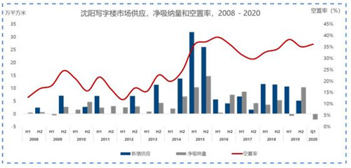 回顧2020年一季度沈陽的優(yōu)質(zhì)寫字樓市場(chǎng),高空置率依然是整個(gè)市場(chǎng)的主要問題。截止到今年一季度,整體空置率穩(wěn)中有升,達(dá)到36.2%。預(yù)計(jì)今年依然會(huì)有超過12萬的新增供應(yīng)量入市,整體市場(chǎng)空置水平則會(huì)進(jìn)一步升高。