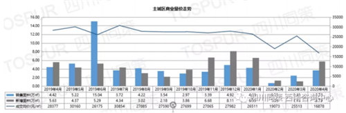 據(jù)同策咨詢近日發(fā)布的市場報告,4月份成都主城區(qū)商業(yè)供銷量回升,成交均價下跌;近郊商業(yè)供銷量增加,價格持續(xù)下降至近一年最低;遠郊商業(yè)供銷量回升,成交均價持續(xù)下跌至近一年最低。