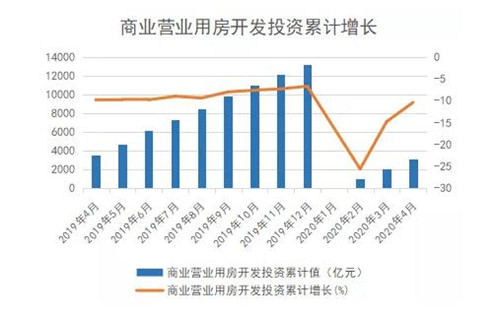 與此同時(shí),4月商業(yè)營業(yè)用房開發(fā)投資額累計(jì)值為3145億元,累計(jì)增長為-10.4%,本月回升情況明顯。