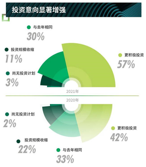 CBRE針對(duì)160位境內(nèi)外投資者對(duì)中國內(nèi)地市場投資意向的調(diào)查顯示,57%受訪者將在今年擴(kuò)大投資規(guī)模,為2016年開始該項(xiàng)調(diào)查以來的最高水平。在境外投資者中,選擇此項(xiàng)的比例為63%,較去年激增25個(gè)百分點(diǎn)。