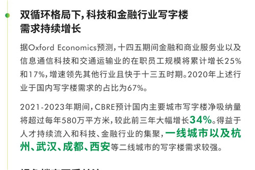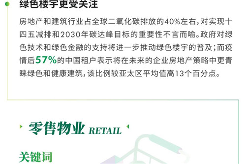 CBRE中國區(qū)總裁李凌表示,站在“十四五“的開局之年展望未來,以科技創(chuàng)新和消費升級為支點,“內(nèi)循環(huán)”戰(zhàn)略和可持續(xù)發(fā)展理念將促進(jìn)中國經(jīng)濟(jì)和社會發(fā)展全面提質(zhì)增效;而進(jìn)一步縮減外資準(zhǔn)入負(fù)面清單、推動RCEP實施、制度型開放等措施將引領(lǐng)中國對外開放邁向新高度。CBRE將繼續(xù)依托全球平臺和本地化理念,以商業(yè)地產(chǎn)服務(wù)為紐帶,幫助更多優(yōu)質(zhì)企業(yè)和境內(nèi)外的投資機(jī)構(gòu)/者在中國取得成功,并推動房地產(chǎn)科技賦能、韌性城市和綠色建筑的發(fā)展。