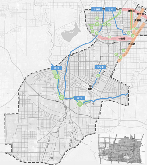 “多帶”為依托主要路網(wǎng)發(fā)展的多條特色商業(yè)帶,包括:高新路—唐延路—西灃路“都市生活活力帶”、西太路“TOD濱水商業(yè)帶”、云水四路“硬科技智慧商業(yè)帶”、灃涇大道“國際人文商業(yè)帶”、科技路“夜經(jīng)濟(jì)示范帶”、錦業(yè)路“樓宇經(jīng)濟(jì)示范帶”、緯三十六路“中央商務(wù)創(chuàng)新帶”。