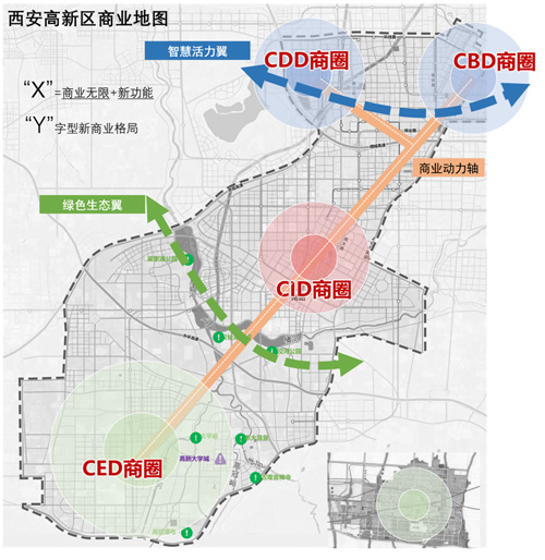 “一軸”為商業(yè)動力軸,引領(lǐng)西安高新區(qū)商業(yè)發(fā)展,提升產(chǎn)業(yè)品質(zhì),優(yōu)化城市形態(tài),匯聚城市服務(wù)功能的核心展示區(qū)域。大力發(fā)展現(xiàn)代商貿(mào)、商務(wù)服務(wù)等領(lǐng)域,形成世界一流的高新技術(shù)開發(fā)區(qū)。