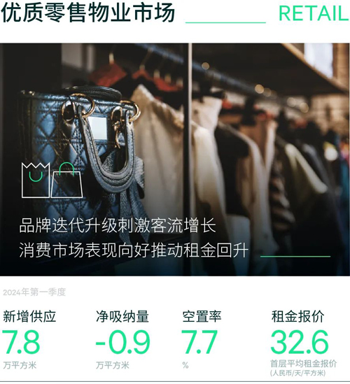 2024年第一季度,北京零售物業(yè)市場改造更新項(xiàng)目王府井喜悅重裝開業(yè),同期次級商圈一座購物中心和一座百貨停業(yè),項(xiàng)目內(nèi)品牌同時(shí)撤出導(dǎo)致凈吸納量為負(fù)。受益于部分前期高空置項(xiàng)目完成品牌調(diào)改,全市空置率環(huán)比小幅回落0.3個(gè)百分點(diǎn)至7.7%。