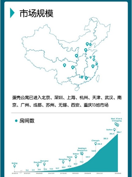 與整體營(yíng)收增長(zhǎng)相對(duì)應(yīng)的,就是蛋殼公寓入駐城市、運(yùn)營(yíng)房間數(shù)的持續(xù)擴(kuò)張。根據(jù)招股書(shū)披露,截至2019年11月30日,蛋殼公寓已經(jīng)進(jìn)入了全國(guó)13座主流一二線(xiàn)城市,管理運(yùn)營(yíng)的總房間數(shù)432,690間。