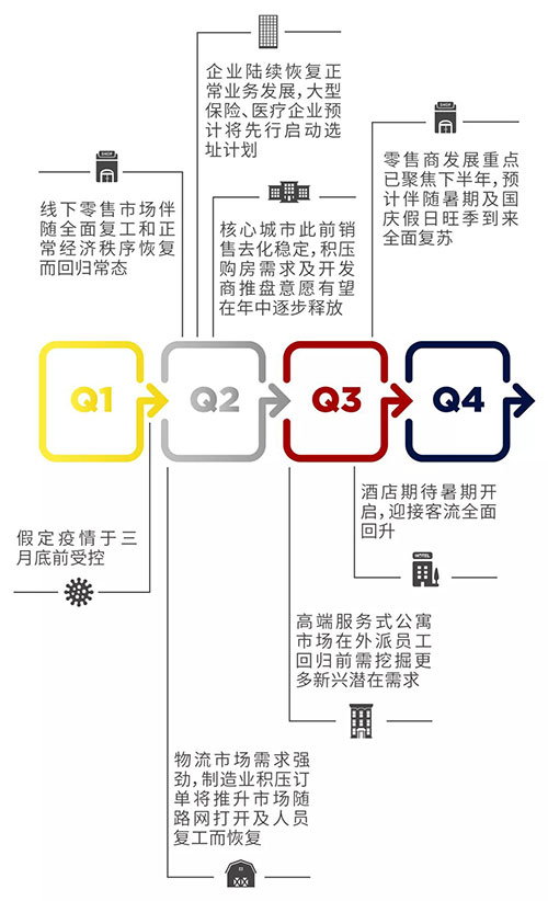 住宅:伴隨預(yù)售證發(fā)放,以及積壓的購房需求陸續(xù)釋放,核心城市有望于年中開始逐步回暖;但高端租賃市場恢復(fù)需更多時日。