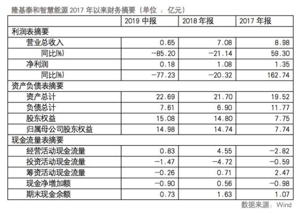 隆基泰和集團(tuán)的煩惱還不僅于此,其旗下的智慧能源板塊亦遭遇困難。港股上市公司隆基泰和智慧能源(1281.HK)2019年收益大幅下降及由盈轉(zhuǎn)虧,至此,該公司的業(yè)績(jī)已連續(xù)兩年縮水。
