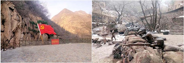 烽火年代,抗日戰(zhàn)爭(zhēng)時(shí)期在當(dāng)?shù)厣綅{溝谷中曾發(fā)生一場(chǎng)激烈戰(zhàn)斗,當(dāng)?shù)剀娒裼⒂驴箵羧哲,因此這里也是“不忘初心牢記使命”革命傳統(tǒng)教育的紅色實(shí)踐教育基地。